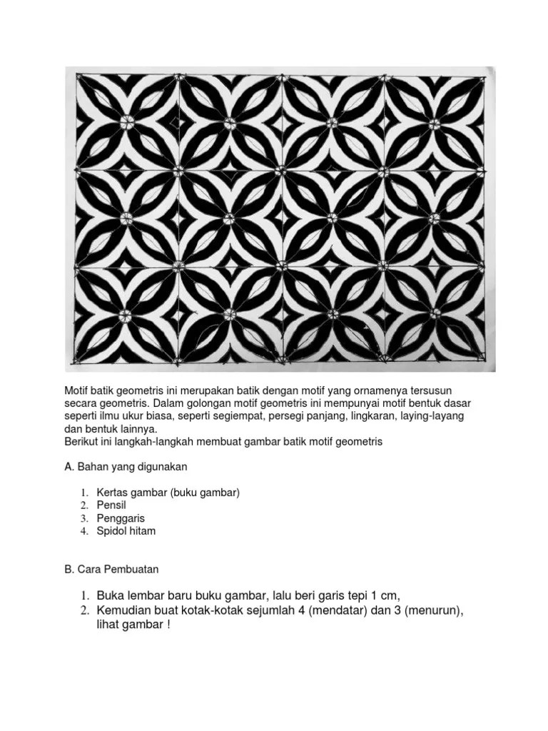 Motif yang satu ini merupakan salah satu motif yang objek utama adalah gambar geometris belah ketupat. 5 motif batik yang mudah digambar untuk anak smp. Motif batik geometris yang mudah digambar batik . Motif batik merupakan corak atau pola yang menjadi kerangka gambar. Dalam pembuatan batik, ada banyak motif yang bisa digambarkan.