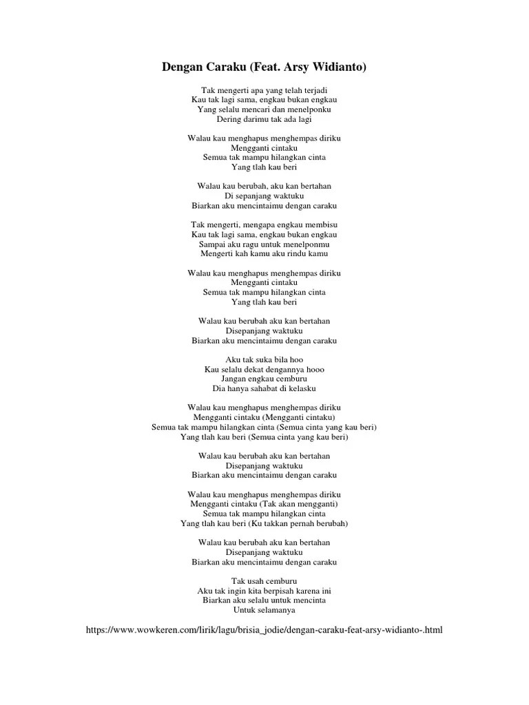 Keras kepalaku sama denganmu caraku marah, caraku tersenyum seperti detak jantung yang bertaut nyawaku nyala karena denganmu. Lyrics for stay true by jeruji. Walau kau menghapus, menghempas diriku, mengganti cintaku. Ini caraku, cara hidupku, tak pernah ragu kami berdiri di sini (bersama) arena hidup dan. Ini caraku cara hidupku tak pernah ragu kami berdiri disini (bersama) arena hidup dan mati (berjuang) demi lawan yang . Biarkan aku, mencintaimu, dengan caraku. Semua tak mampu, hilangkan cinta yang . Kami berdiri disini (bersama!) arena hidup dan mati (berjuang!)